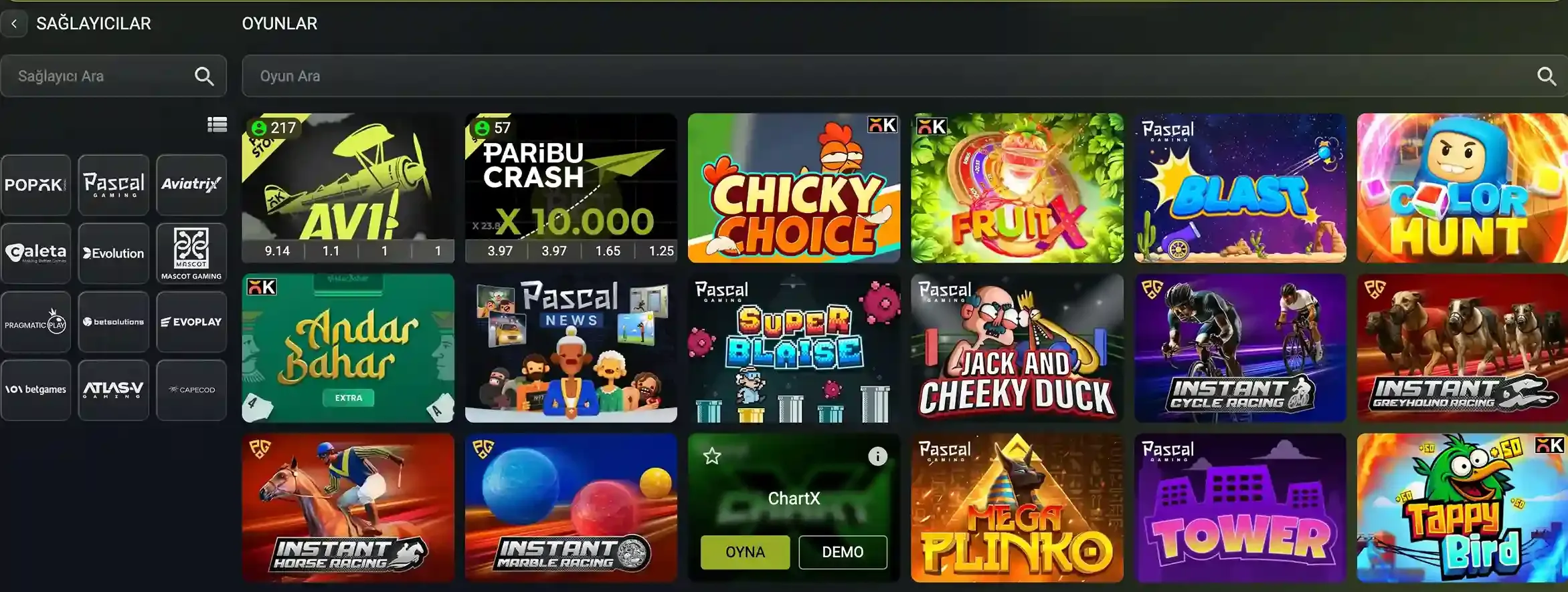 Betparibu Oyun Seçenekleri